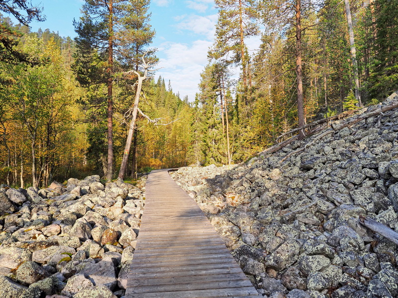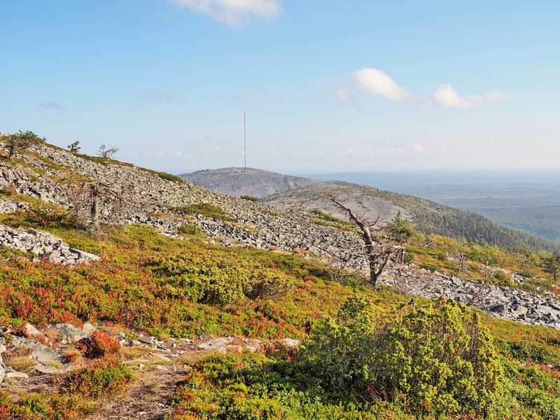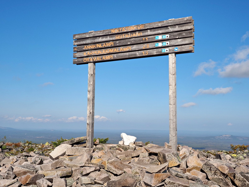 Meine Wanderung führt mich auf den Valtavaara, mit 464 m der höchsten Berg Kuusamos, er liegt gegenüber dem Skiberg. Ganz ungewohnt für mich in Finnland, bin ich hier mal nicht weitgehend alleine unterwegs, die Anzahl an Wanderern hält sich aber in für mich noch akzeptablen Grenzen.