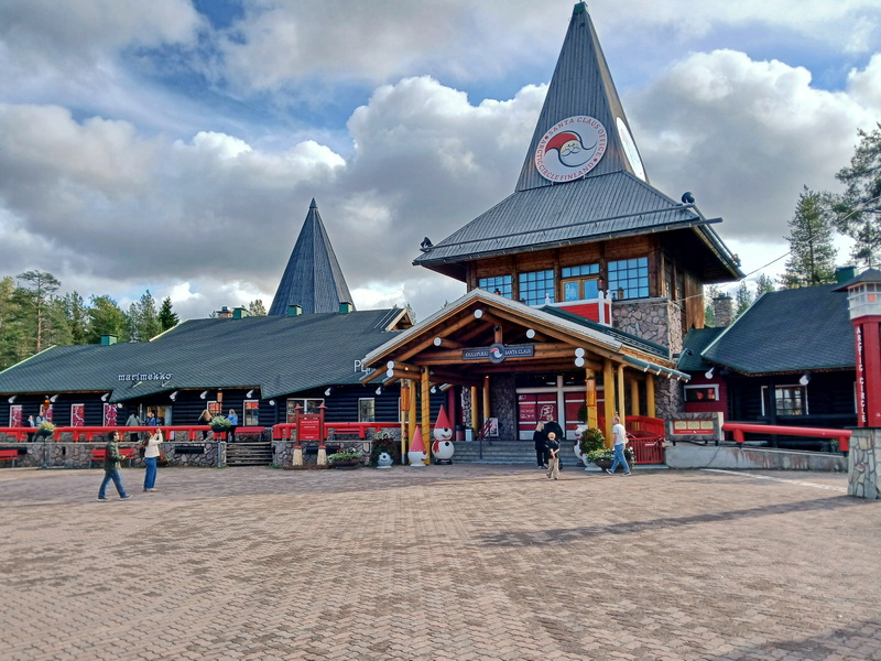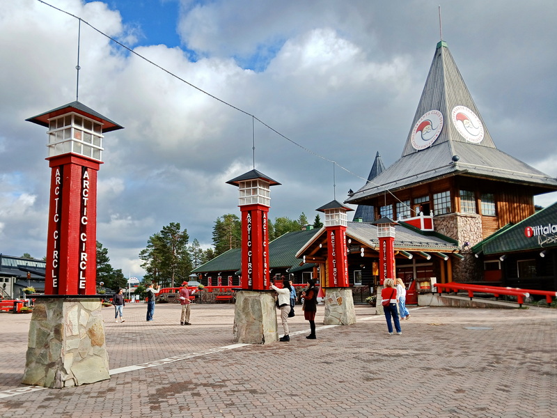Etwas nördlich der Innenstadt verläuft der Polarkreis und das wird (warum überhaupt?) in Verbindung zum Weihnachtsmann gesetzt und kräftig touristisch ausgeschlachtet. So gibt es den Santapark, eine Art Freizeitpark in einem Bergstollen eher für Kinder, wo unter anderem ein Weihnachtsmann für Fotos bereitsteht. Dieser Park ist aber geschlossen, er hat nur kurz zur sommerlichen Hochsaison und dann wieder im Winter geöffnet. Direkt daneben und auf Höhe des Polarkreises liegt das Weihnachtsmann Dorf (Santa Claus Village), das ich nun ansteuere.