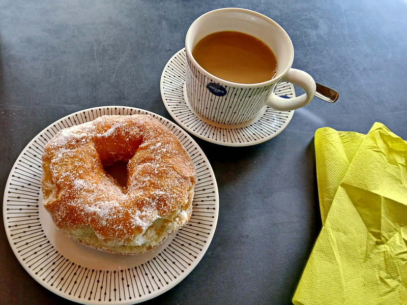 Zur Mittagszeit erreiche ich Muonio, in der Raststätte hier gibt es leider kein Mittagsbuffet, ich bestelle von der spärlichen Fastfood Karte einen Döner Wrap mit Pommes (EUR 10,00), beides schmeckt ganz gut, der Wrap hätte heißer sein können.