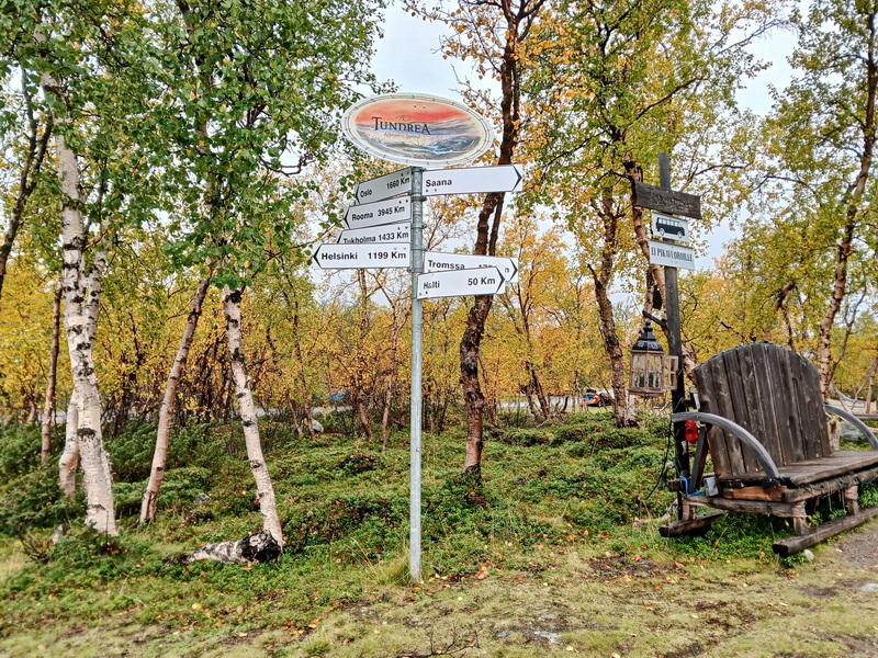 Im Besucherzentrum schaue ich mich im Souvenirshop um, kaufe aber wieder nichts. Danach fahre ich zum nahegelegenen Wanderparkplatz. Dieser ist Ausgangspunkt für Wanderungen auf den Saana, die Wanderung zum Dreiländerpunkt und auf den Pikku Malla.