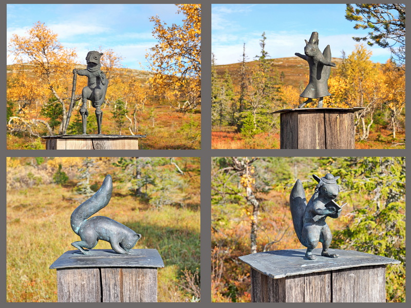 Das letzte ebene Wegstück nennt sich „Eichhörnchen Avenue“, auf Holzsockeln sind eine Vielzahl von Eichhörnchenskulpturen zu bewundern, zum Künstler finde ich keine Informationen.