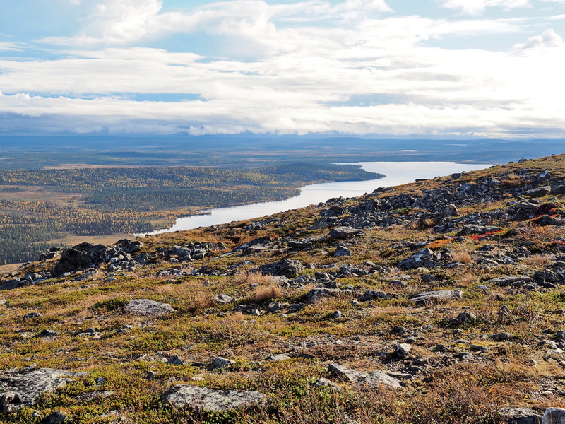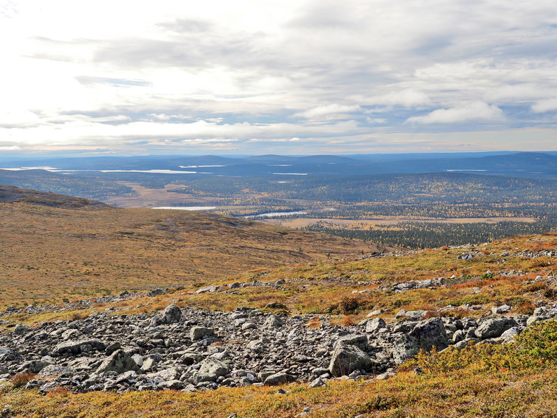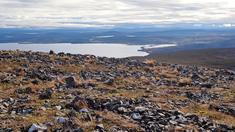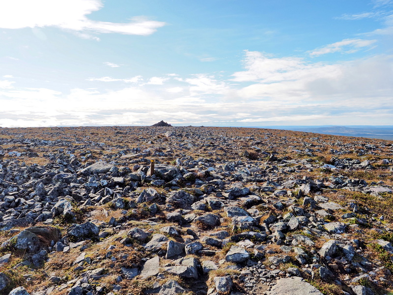 Gegen 12 Uhr erreiche ich den 705 m hohen Palkaskero Gipfel, erkennbar an einem großen Steinhaufen.