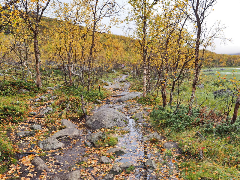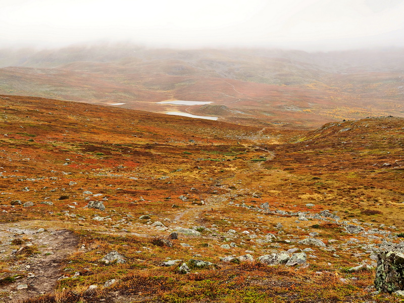 Ich entscheide mich für den Pikku Malla, dorthin hinauf wandern auch ein paar andere, auf dem Weg zum Dreiländerpunkt kann ich niemanden sehen (und bei diesen Wetterbedingungen bin ich froh, wenn ich nicht ganz alleine unterwegs bin) und damit habe ich die Möglichkeit eine „vollständige“ Wanderung zu absolvieren, während ich den anderen Weg hoffentlich bei einem zukünftigen Besuch hier (vielleicht schon nächsten Herbst?) in ganzer Länge gehen kann.