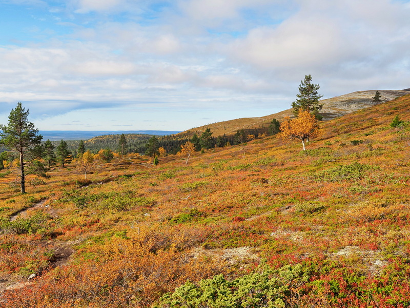 Die Farben von gelb nach orange zu rot und dazwischen grün finde ich ganz wunderbar, wenn es auch ziemlich kalt war hast du wohl eine ziemlich ideale Zeit für den Urlaub erwischt. Am besten gefällt mir der Blick vom  Salmivaara herunter, ich brauche keine hohen Berge aber eine erhöhte Aussicht ist einfach besser als immer nur Flachland.