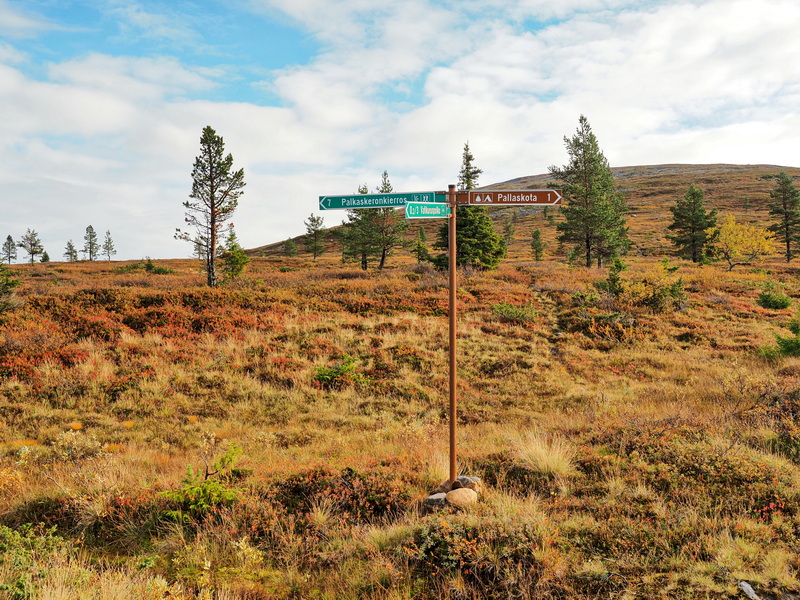 Insgesamt eine halbe Stunde halte ich mich hier auf, dann geht es weiter zum nur wenige Fahrminuten entfernt liegenden Parkplatz für die Wanderung auf den Särkitunturi. Es gibt beidseits der Straße 79 einen Parkplatz, am kleineren steht eine Toilette und man hat schon mal einen schönen Fernblick.