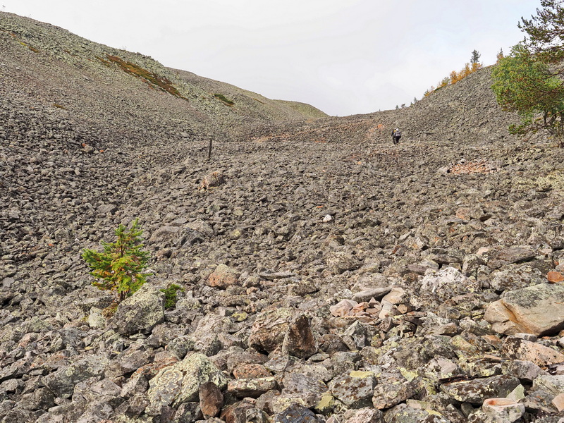 komme ich bald an eine Wegkreuzung, ab hier führt der Wanderweg steil nach oben durch ein Geröllfeld, aber weiterhin auf gut begehbarem und gut sichtbarem Pfad.