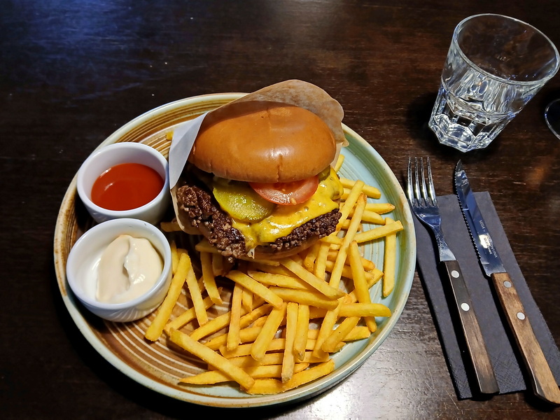 Ich fahre in den Ort Ylläsjärvi bzw. zu dessen Gondelstation Ylläs Ski Resort, wo es Hotels, Apartments, Geschäfte und ein paar Restaurants gibt. In einem davon („Ylläs Kota“) esse ich nochmal einen Rentierburger mit Pommes, dazu einen Eistee und danach einen Kaffee (EUR 23,00).