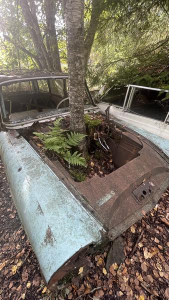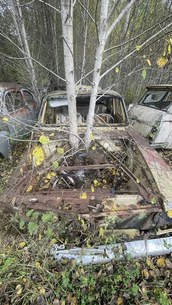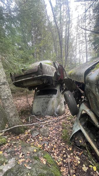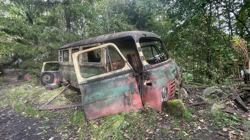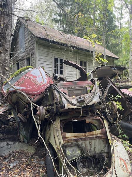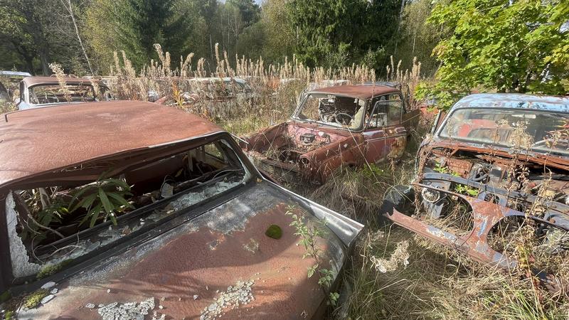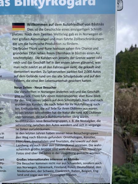 Nach dem Shoppen machten wir uns auf den Weg nach Båstnäs. Hier gibt es noch einen Autofriedhof – vor ein paar Jahren hatten wir bereits einen anderen besucht. Das letzte Stück dahin war mehr eine Schotterpiste als Straße, was Andy natürlich gefiel.