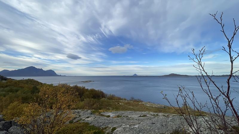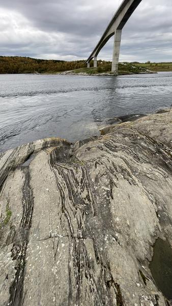 anstelle eines Himmels voller Grün, aber auch viele Wolken. Diese haben uns den ganzen Tag begleitet und auch öfter mal gezeigt, was sie können. Trotzdem sind wir ab Bodo auf die Küstenstraße Fv17 gefahren. Bevor es über die Saltstraumbrua ging, haben wir jedoch davor gestoppt und haben uns den Gezeitenstrom nochmals angesehen. Andy hat kurz die Angel in das Gewässer geworfen, aber nichts herausgeholt.