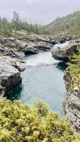 Am Ortsrand gab es den Campingplatz „Otta Camping og Motell in Otta“, schön am Fluss gelegen. Wie so oft zu dieser Zeit war die Rezeption nicht besetzt. Zahlen konnte man mit einer norwegischen App (die es nur für die Norweger gibt), mit Überweisung oder bar in einen Umschlag. Hier wurde aber gleich angezeigt, dass Gebühren von 10.- € fällig werden. Das war mir dann im Verhältnis zum Übernachtungspreis doch zu viel. Ich wählte die angegebene Telefonnummer und fragte, ob wir auch in Euro bezahlen könnten. Der nette Herr am anderen Ende der Leitung meinte: Ja, kein Problem. Bei ihm würde ein Pole arbeiten, diesen könne er auch ein Euro bezahlen. Perfekt. Also habe ich das Geld im Umschlag in den Briefkasten gesteckt.