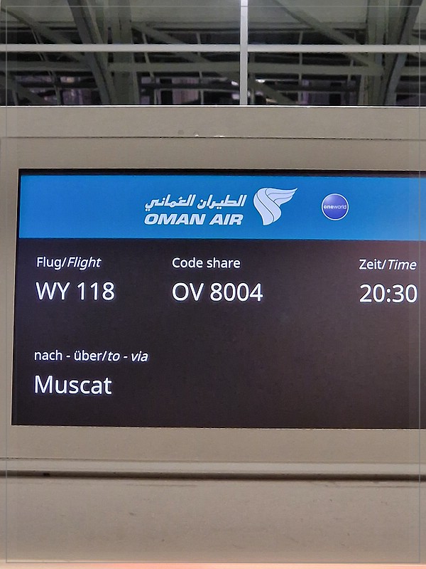 Wir hatten uns für einen Direktflug mit der Oman Air ab Frankfurt entschieden. Die Airline fliegt nur einmal am Tag und das als Nachtflug mit einem Dreamliner (Boeing 787).
