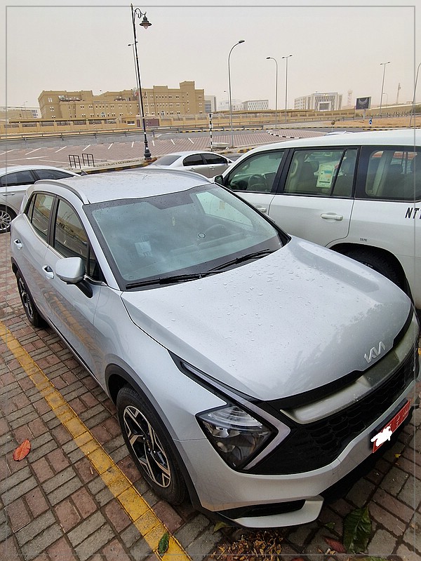 Wir erhielten einen silbernen KIA Sportage mit 87862 km auf dem Tacho und kaum Sprit im Tank. Als ich abends das Bild machte, hatte es kurz zuvor geregnet. Das war aber das einzige Mal in den 10 Tagen.