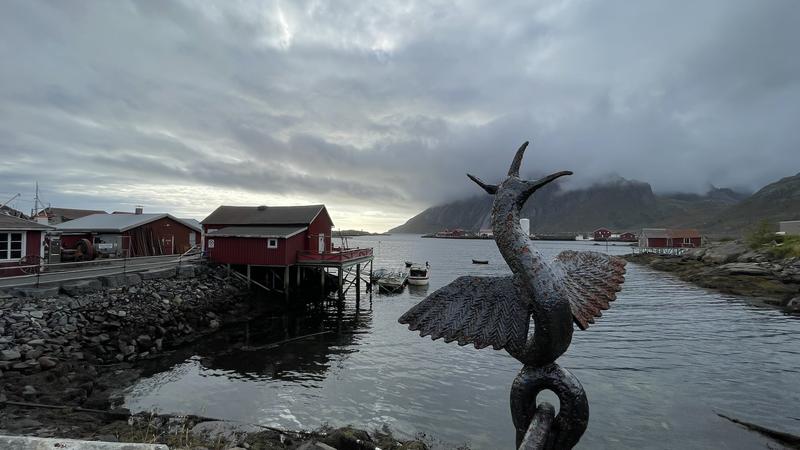 Vom See spaziere ich in die Innenstadt, der Weg geht bergauf, vorbei an zunächst neueren, dann älteren Wohnblocks und Mehrfamilienhäusern und dem Kunstwerk „Kylän Portti“ (Village Gate) von Akseli Leinonen aus dem Jahr 2021.